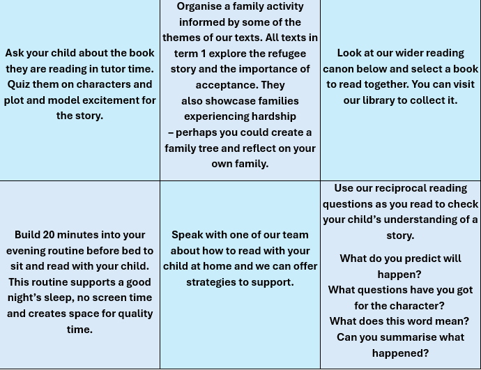 - Actively engage in Sparx Reader for Home Learning to support our reading